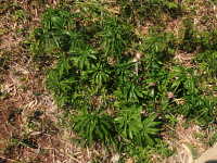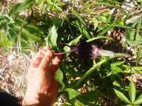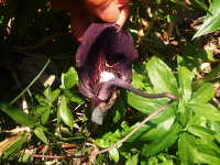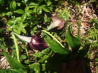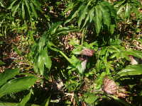 | 多年草 草丈:30cm〜50cm 花期:4月〜5月 生育場所:林縁など 特徴:鳥足状に10枚前後の小葉を広げた葉。黒褐色の仏炎苞。 名前の由来:仏炎苞内の棒状の花序から伸びた糸状の付属体を、浦島太郎が釣り糸を垂れる姿に見立てた。 |