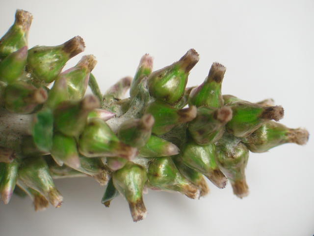 ウラジロチチコグサ 褐色の花(長さ5mm、直径2.5mm)