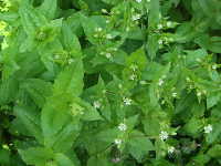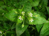特徴:葉は先の尖った卵形で。茎は赤みを帯びる緑色。ミドリハコベより更に葉が大きい。