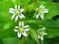 名前の由来:「ハクベラ」が転じて「ハコべ」になった。「ハク」は茎から出る白い糸を「絹=