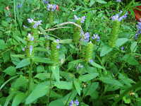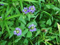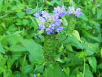 | 多年草 草丈:20cm〜30cm 花期:6月〜8月 生育場所:山野の草地、道ばたなど 特徴:約60mmの花穂に青紫色の花を密につける。花が終わると茶色い果穂ができる。 名前の由来:花穂の形が弓矢を入れる「 |