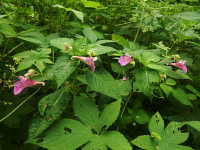 | 1年草 草丈:40〜80cm 花期:8月〜9月 生育場所:水辺などのやや湿った場所 特徴:赤紫色の花がつり下がるように咲く。 名前の由来:花の形が帆掛け船を釣り下げたようであるため「ツリフネソウ」。 また、渡良瀬遊水地付近に生息するものは従来の「ツリフネソウ」と形態的に相違するため2005年9月に新種として「ワタラセツリフネソウ」と発表された。埼玉県北本市内で撮影したものは形態的に後者である。 |