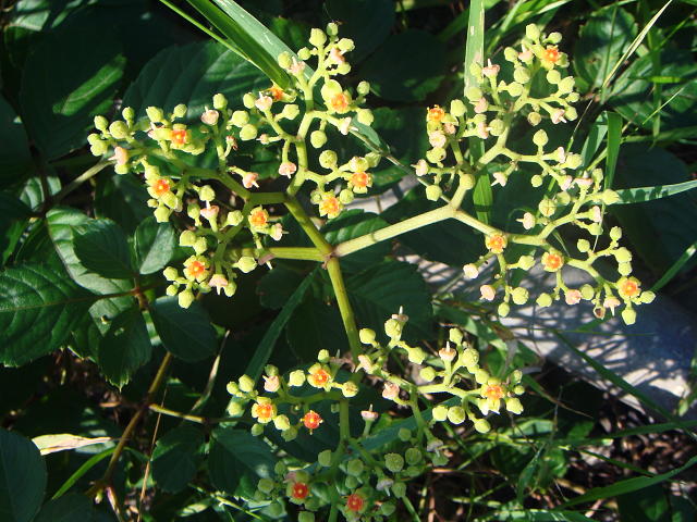ヤブガラシ 花盤は赤色から橙色に変化