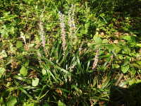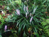 | 多年草 草丈:30cm〜50cm 花期:9月〜10月 生育場所:林縁、林の下など 特徴:直立する花茎に薄紫の花を多数付ける。葉が線形。 名前の由来:「ヤブ」に生え、葉の形が「ラン」に似ているため。 |