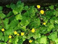 生育場所:庭、道ばたなど 特徴:八重咲きの黄色い花で、花茎が伸びる。園芸種が野生化。