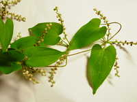 | 多年草 つる性植物 花期:8月 生育場所:畑、道ばたなど 特徴:細長いハート型の葉でムカゴが多数付く。根はトロロとして食用になる。 |