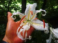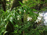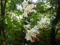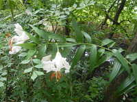 | 多年草 草丈:100〜150cm 花期:7〜8月 生育場所:林縁、草地、日当たりの良い原野など 特徴:大型で黄色い太筋のある白い花で、濃厚な甘い香りがする。 名前の由来: |