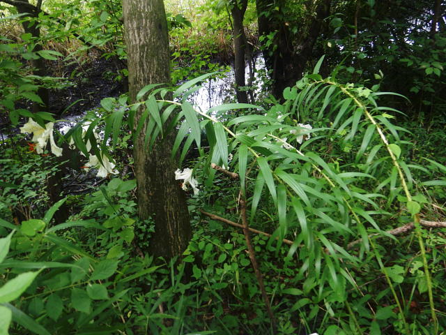 ヤマユリ 雨後は花の重みで茎が弓なりになる