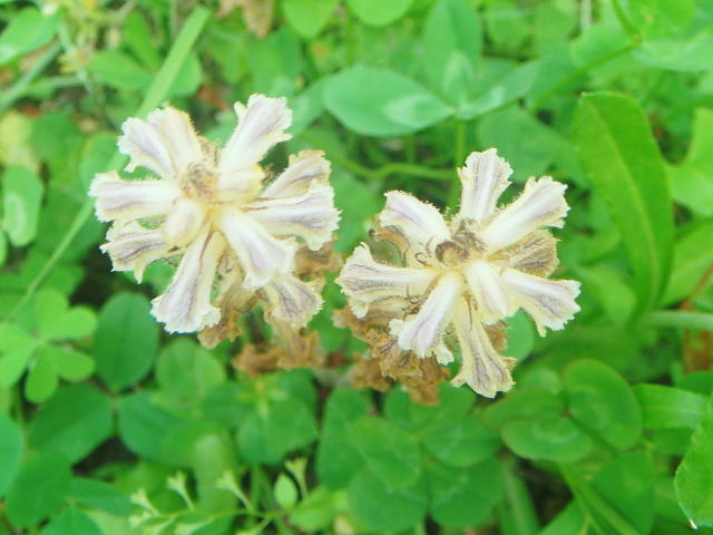 ヤセウツボ 紫すじ入りの白い花(長さ13mm)