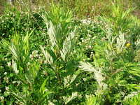 | 多年草 草丈:50cm〜80cm 花期:9月〜10月 生育場所:畑、道ばた、空き地など 特徴:生育初期はキクの葉に似た形で、次第に切れ込みが深くなる。葉裏は白い綿毛を密生する。若葉は草餅の材料。 名前の由来:四方に旺盛に繁殖するので「 |