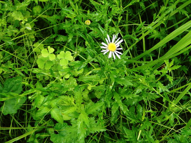 ユウガギク 中部の葉は切れ込みのある長楕円形