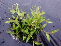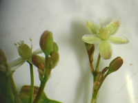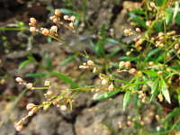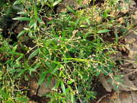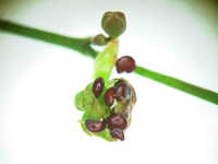 | 1年草 草丈:10cm〜25cm 花期:6月〜9月 生育場所:道ばた、畑など 特徴:3枚の細長い葉が輪生し、赤褐色の果実が多数付く。 名前の由来:葉がザクロに似て、弾けた果実もザクロに似るため。 |