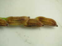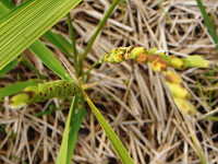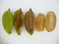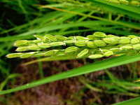 | 年草 草丈:100cm 花期:8月 生育場所:水田 特徴:籾の先端部が赤褐色で、次第に籾全体が赤みを帯びる。脱粒しやすい。出穂がコシヒカリよりやや遅く、穂の位置がコシヒカリより高い。 参考:在来種と栽培種の交雑で生まれたもので、除草剤による駆除が難しい。混入すると玄米が有色のため、米の等級が下がる要因となる。 |