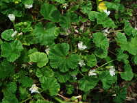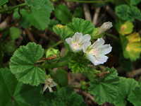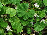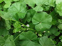 生育場所:道ばたなど 特徴:薄桃色の花と丸くて縮れた葉