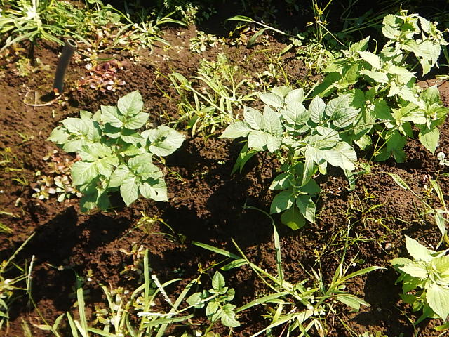 ジャガイモ 前作の取り残しイモから発芽(10月中旬)
