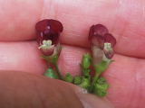 ・花:左右相称。花弁は合着して4〜5裂し、シソ科に似た唇状、又は筒状になるものがある。