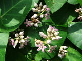 | ・キョウチクトウ、ニチニチソウの仲間。 ・花:両性花で、放射相称(中心軸を通る相称面が3個以上ある)。花弁は筒状に合生し、先は5裂する。目立つものが多い。 ・果実:袋果(1枚の心皮から成り、成熟すると1本の線に沿って裂開する)や液果(外果皮以外の果皮(内果皮と中果皮)が多肉質・多汁質であるもの。ミカンやリンゴなどの果樹が該当)。 ・葉:楕円形などの単葉で、対生又はらせん状配列。 ・参考事項:キョウチクトウは樹木全体が急性毒性を持つ。ニチニチソウにも草全体に毒性がある。 |